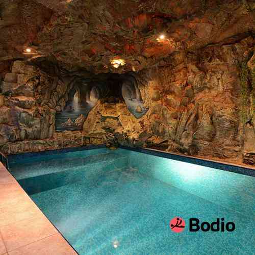 Холл в восточном стиле. Зал в виде тропического рая на берегу океана. Настоящий каменный грот с фонтаном. Джакузи с хромотерапией. Солярий.
