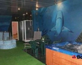 Неповторимое сочетание строгого стиля гостиной и расписного интерьера бассейного зала в виде акул и затонувших кораблей. Полный набор атрибутов для отличного отдыха. Проводим банкеты. К нам удобно добраться, причем как на машине: поворот за Северянинской эстакадой с Ярославского шоссе на ул. Красная Сосна (напротив заправки ВР и магазина Рамстор), так и общественным транспортом: маршрутное такси 144м от метро ВДНХ и легко найти – ул. Красной Сосны, д. 3 (здание бизнес-центра «Северянин»). Вас встретит приветливый персонал, а на время отдыха возьмут вашу машину под охрану и постоянное видео-наблюдение. Для Вас: уютная гостиница с мягким кожаным угловым диваном, дубовым столом, красивыми картинами, полным набором аудио-видео аппаратуры, Космос-ТВ, караоке с двумя микрофонами и 4000 песен, бильярдом и кальянным уголком с мраморным столом и высоким 82 см. Кальян на две персоны. К вашим услугам красивый бассейн 5х4: подогрев, подсветка, постоянная фильтрация, а для любителей попариться отличная парилка с t до 120 градусов, 3-х ярусными липовыми лежаками и печкой-каменкой. Всегда в наличии дубовые веники, ароматизированные настойки, натуральные мыла ручной работы. Предлагаем различные виды массажа и пропарок. Имеется спортзал с настольным теннисом, штангами, матами и боксерскими грушами, а также очень уютные две комнаты отдыха. Также для Вас вкуснейшие блюда восточной и русской кухни, красивая сервировка и высокий уровень сервиса. У нас доступные цены (от 1000 руб./час.), влюбленным, посетившим нас впервые- подарок. К нам возвращаются и нас рекомендуют друзьям. Присоединяйтесь!