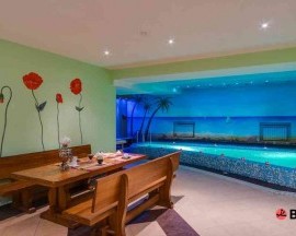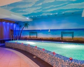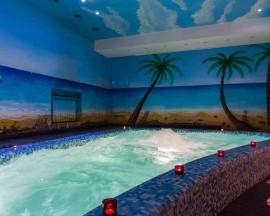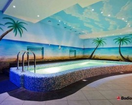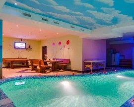 Сауна в Оазисе русско-финская, рассчитанная сразу на 12 любителей парных удовольствий. Но основная приманка — это отличный бассейн размером 3 х 5 м со всеми возможными эффектами: подсветка и противоток, гейзер и озонирование, и все это в фильтрованной подогретой воде.