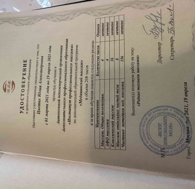 О себе : дипломированный мастер массажа