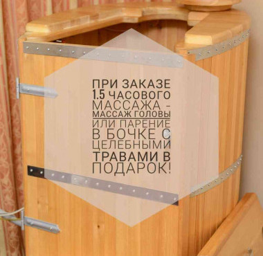 В кабинете есть кедровая фитобочка,перед массажем можно хорошо распариться.