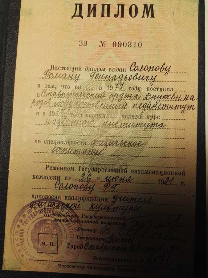 - Образование: Высшее спортивно-медицинское