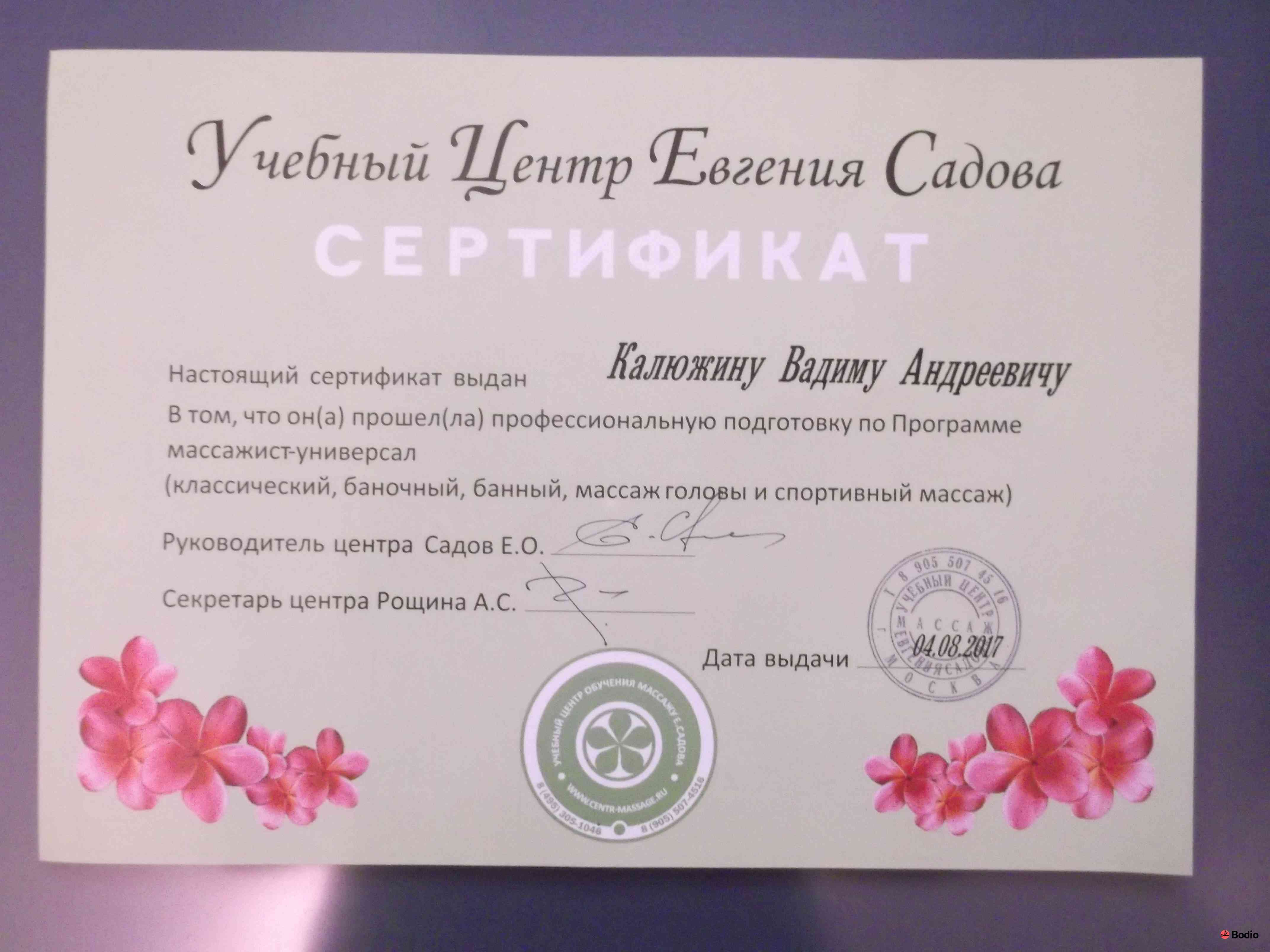 - Образование: учебный центр Евгения Садова