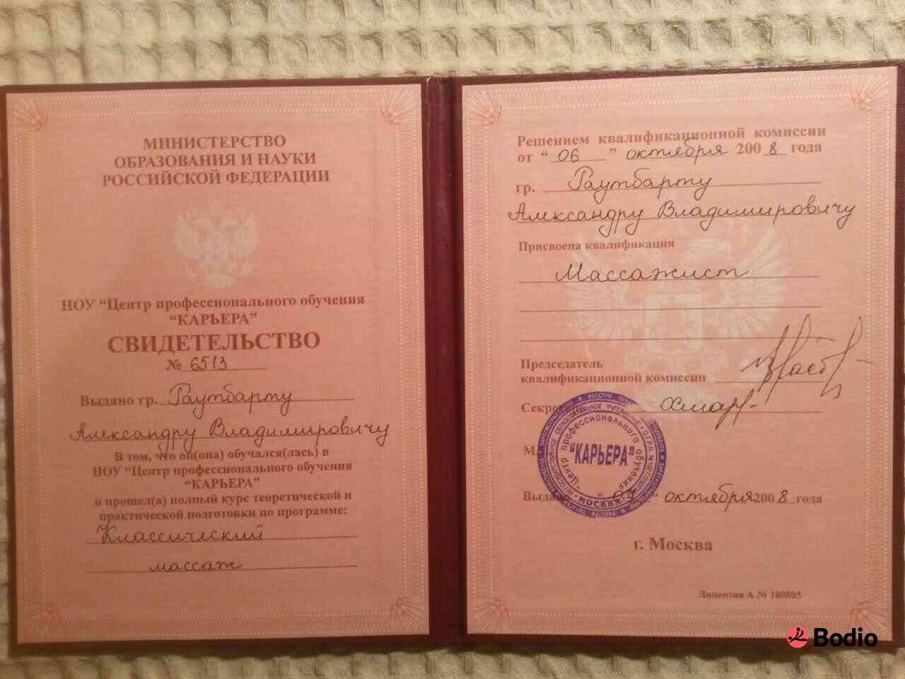 - Образование: Медицинское среднее специальное